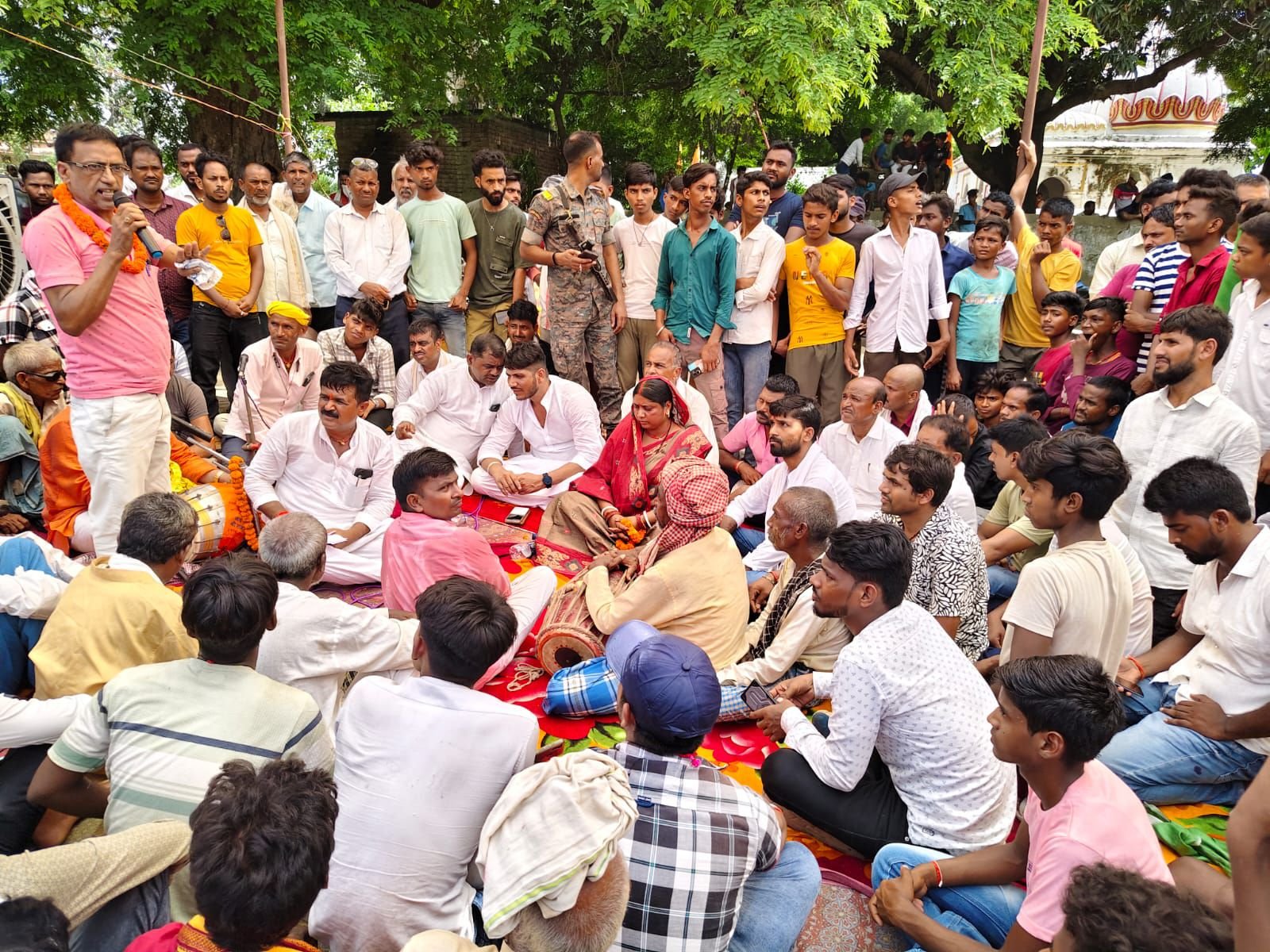 खेल मैदान में बन रहे पंचायत सरकार भवन का विरोध में अतरी विधायक अजय यादव ने दिया एकदिवसीय धरना